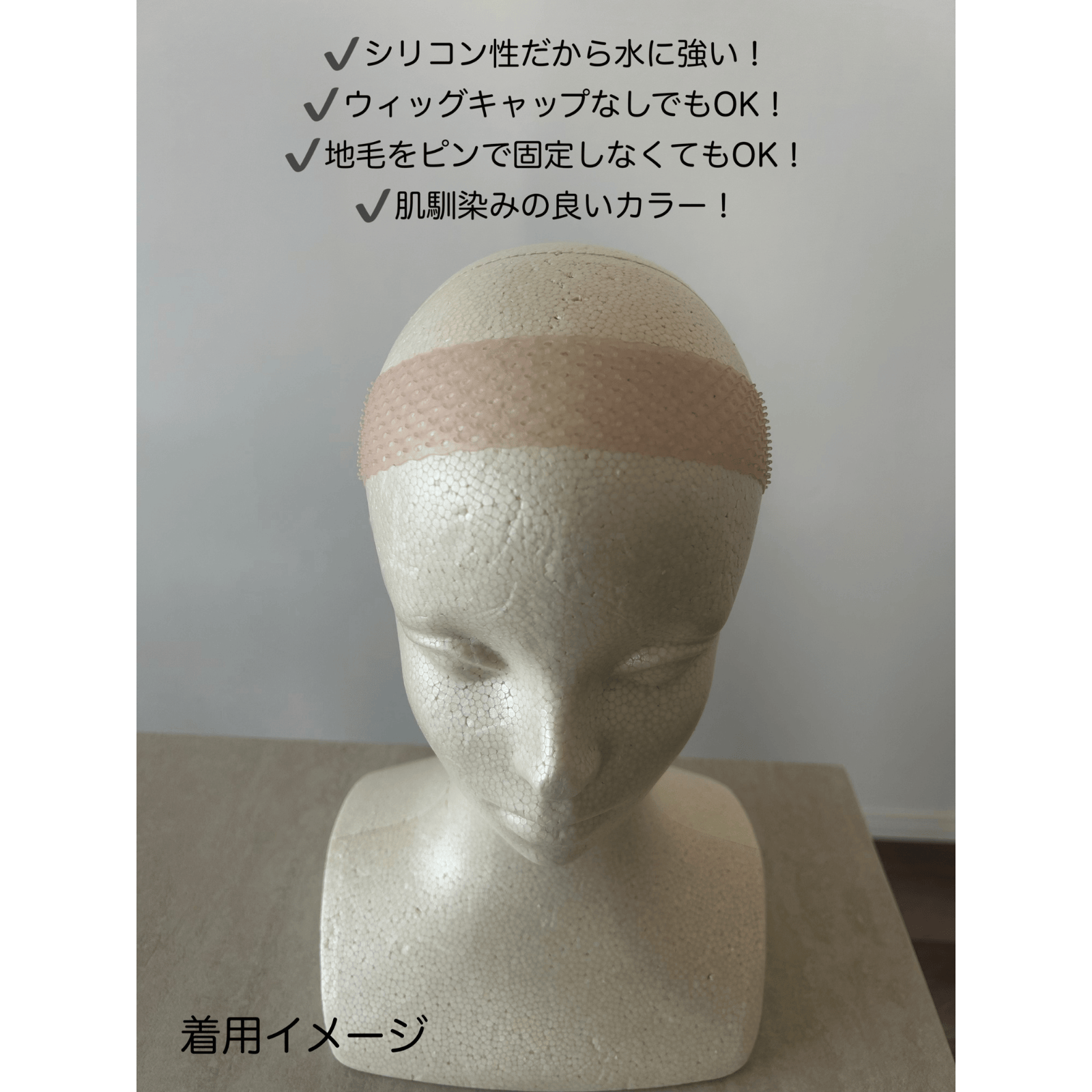 ウィッグがずれる不安を解消する、100%シリコン製のズレ防止バンドです。